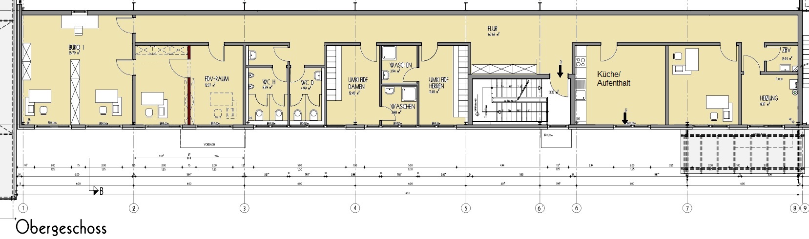Büro-/Sanitärräume mit Duschen und Küche/Sozialräume, ca. 202 m².
